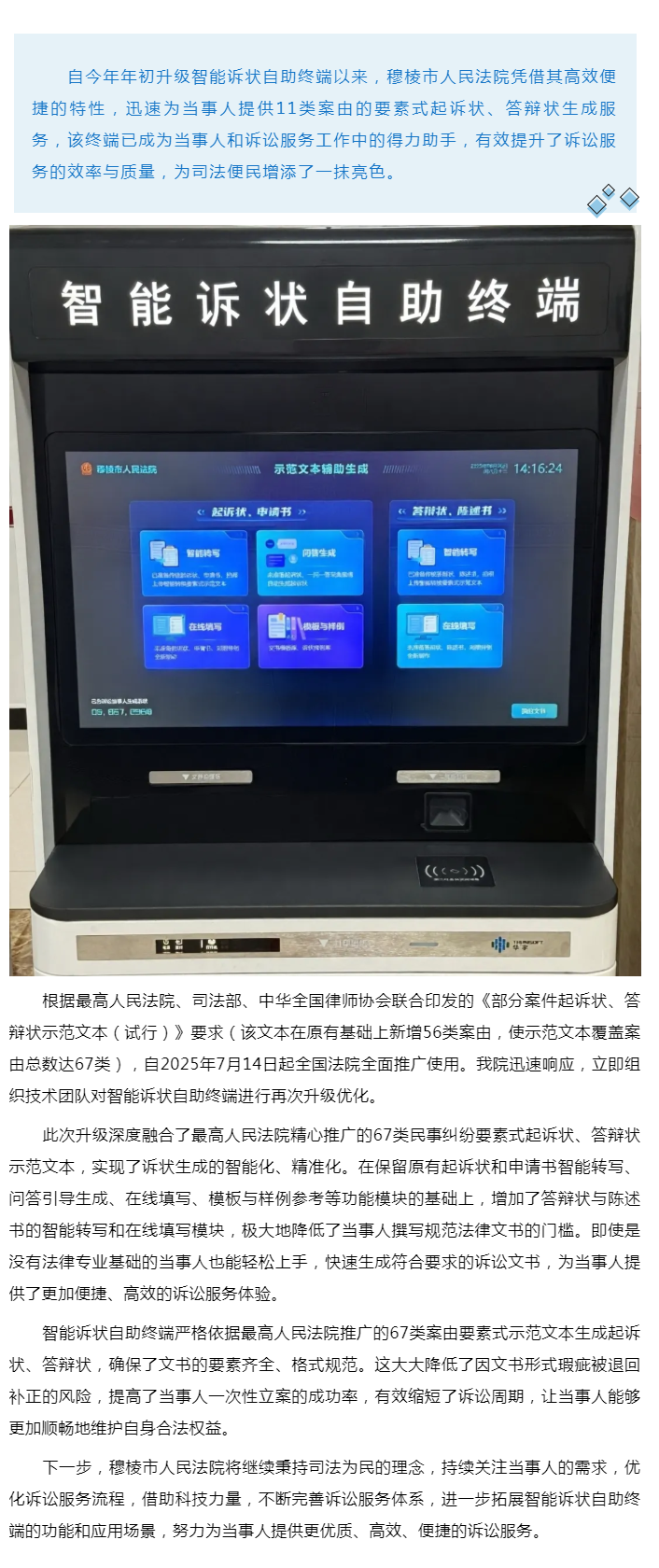 智能诉状自助终端再升级,67类两状示范文本扫码既得!