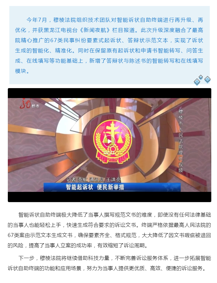 【新闻夜航】智能诉状自助终端全面覆盖67类案由,让打官司更省心!