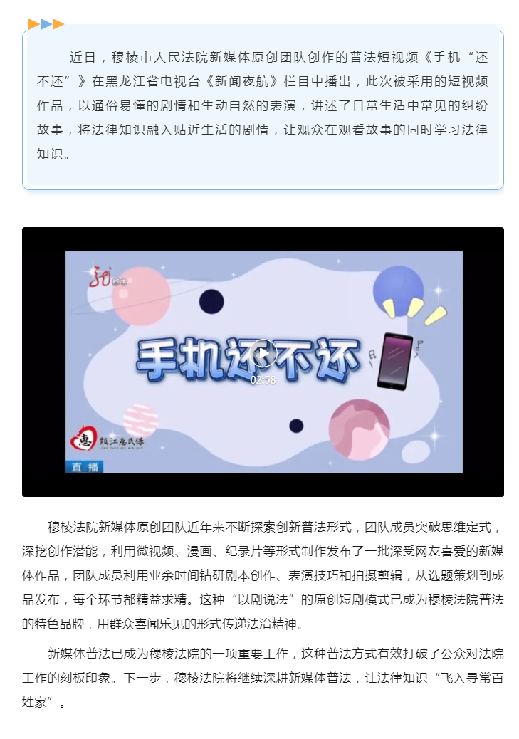 【新闻夜航】穆棱法院新媒体原创团队视频展播《手机“还不还”》
