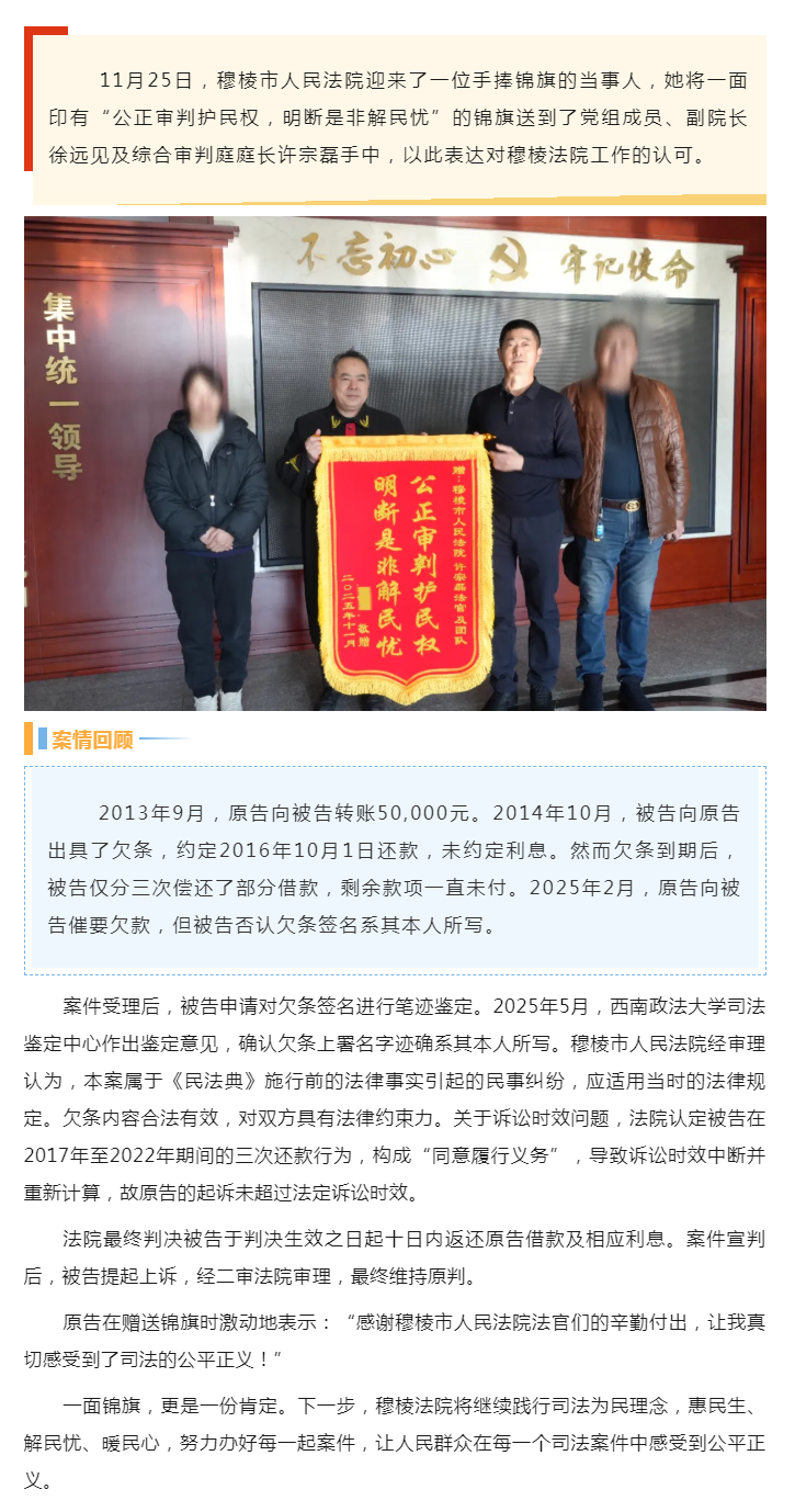 一面锦旗,十分谢意,司法温度这样暖了群众的心