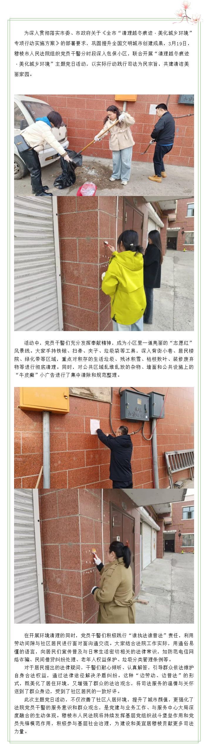 党建红引领志愿红,共建清洁美丽家园 ——穆棱市人民法院开展3月主题党日活动